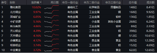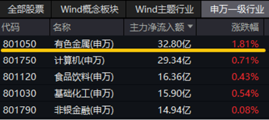 资金面上,有色金属板块全天获主力资金净流入32.8亿元,高居31个申万一级行业首位!