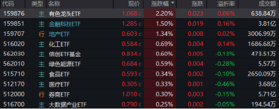 盘面上,周期股抱团爆发,有色、化工、地产等全天活跃!其中,有色金属领涨两市,雅化集团、北方铜业双双涨停,有色龙头ETF(159876)场内大涨超2%;化工板块全天红盘震荡,新凤鸣领涨5.57%,化工ETF(516020)场内收涨0.69%;龙头地产大面积飘红,地产ETF(159707)场内久违收涨逾1%。