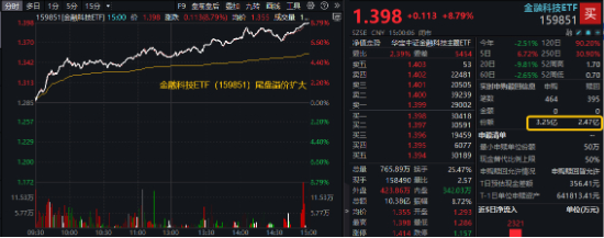 一、牛冠A股!金融科技多股涨停,金融科技ETF(159851)爆量拉涨8.79%,资金大额净申购7800万份!