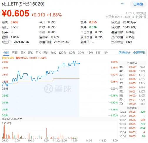 多股涨超5%!化工板块午后延续攻势,化工ETF(516020)盘中摸高1.85%!