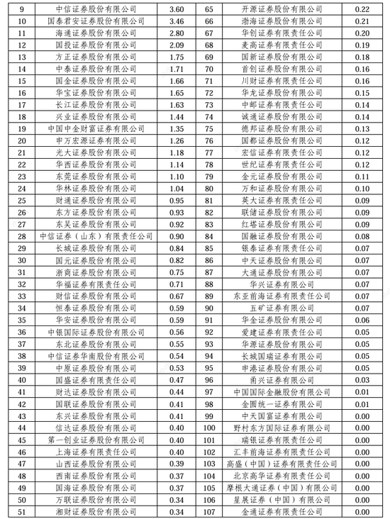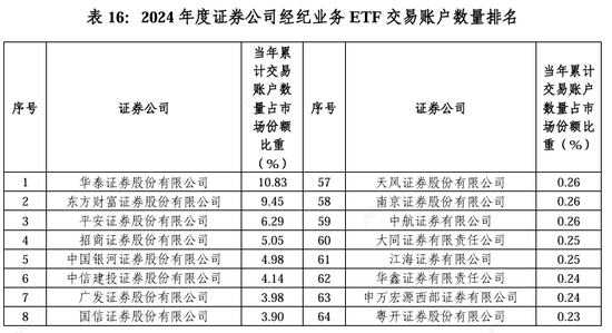 2024券商经纪业务ETF交易账户数量排名:东方财富证券ETF累计交易账户数量占市场份额比重,从9.56%降至9.45%