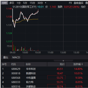 基金持仓持续回升,国防军工ETF(512810)逆市涨超1%!成份股华丰科技飙升逾14%,航锦科技涨停