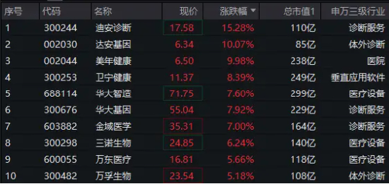 14日早盘,AI医疗概念再度走强,迪安诊断飙升15%,达安基因、美年健康涨停!卫宁健康华大基因、华大智造、金域医学等大幅跟涨。