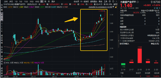 二、阿里+DeepSeek大消息!11股涨停,大数据产业ETF(516700)飙涨7.65%上探阶段新高,霸居全市场ETF涨幅榜前列