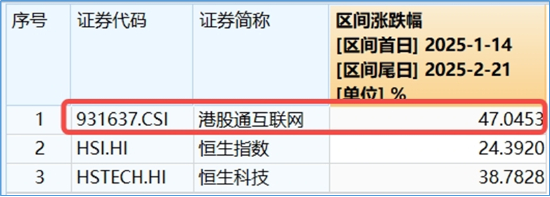 本轮港股行情呈现显著的科网龙头领涨态势,数据显示,1月14日至2月21日,中证港股通互联网指数累计涨幅达47.05%,较恒生科技指数、恒生指数分别超额8.27和22.66个百分点。