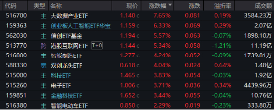 AI算力产业链爆发涨停潮,润泽科技、锐捷网络、光环新网、奥飞数据集体20CM涨停,全市场首只的创业板人工智能ETF华宝(159363)场内劲涨6.33%再创上市新高!聚焦AI数据要素细分机会的大数据产业ETF(516700)场内收涨7.65%,收盘涨幅高居全市场ETF涨幅榜第十一!