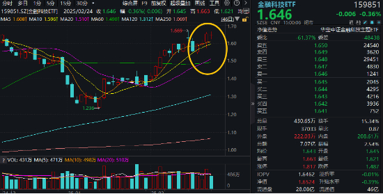 热门ETF方面,金融科技ETF(159851)午后先抑后扬,场内价格微跌0.36%但日线强势收阳,晋级四连阳!全天换手率超15%,成交额达7亿元,交投维持高度活跃!值得注意的是,金融科技ETF(159851)盘中频现溢价交易,买盘资金尤为强劲,或有资金大举介入!