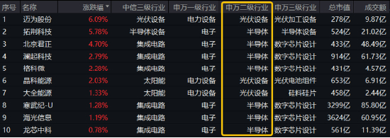 标的指数成份股方面,半导体和光伏方向表现居前。聚焦科创创业50指数涨幅前10大成份股,半导体行业个股占据7席,拓荆科技涨超5%,北京君正涨逾4%,澜起科技、格科微联袂涨超2%;光伏方面,迈为股份涨超6%,晶科能源涨逾2%,大全能源涨超1%。
