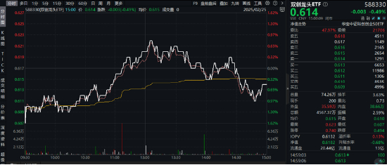 今日,创业板指随市盘整,跌逾1%,科创板逆市飘红,表现亮眼,热门ETF方面,覆盖创业板+科创板高成长龙头的双创龙头ETF(588330)场内价格盘中一度涨逾0.8%,最终收跌0.49%。