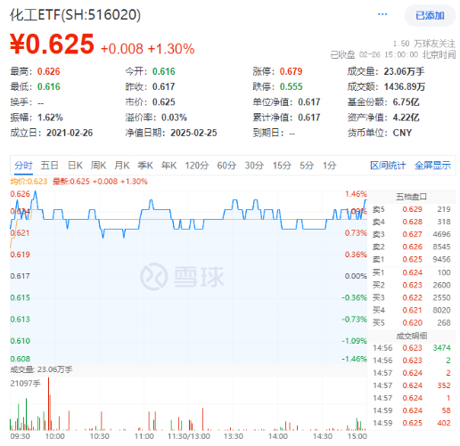 图片及数据来源:沪深交易所、华宝基金、雪球、Wind等,截至2025年2月26日。风险提示:化工ETF被动跟踪中证细分化工产业主题指数,该指数基日为2004.12.31,发布日期为2012.4.11,指数成份股构成根据该指数编制规则适时调整。Wind数据显示,细分化工指数近5个完整年度收益率分别为2020年:51.68%;2021年:15.72%;2022年:-26.89%;2023年:-23.17%;2024年:-3.83%。标的指数成份股构成根据该指数编制规则适时调整,其回测历史业绩不预示指数未来表现。文中指数成份股仅作展示,个股描述不作为任何形式的投资建议,也不代表管理人旗下任何基金的持仓信息和交易动向。基金管理人评估的该基金风险等级为R3-中风险,适合适当性评级C3(平衡型)及以上投资者。任何在本文出现的信息(包括但不限于个股、评论、预测、图表、指标、理论、任何形式的表述等)均只作为参考,投资人须对任何自主决定的投资行为负责。另,本文中的任何观点、分析及预测不构成对阅读者任何形式的投资建议,亦不对因使用本文内容所引发的直接或间接损失负任何责任。基金投资有风险,基金的过往业绩并不代表其未来表现,基金管理人管理的其他基金的业绩并不构成基金业绩表现的保证,基金投资须谨慎。