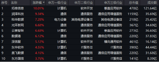 AI热度持续高企,大数据产业方向乘风上攻!DeepSeek概念股拓维信息涨停、数据港涨逾6%,浪潮信息涨超2%。此外,字节跳动产业链个股润泽科技涨逾9%,数据中心概念股科华数据涨超7%,光环新网、云赛智联等个股大幅跟涨。