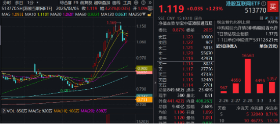 一、全线爆发,港股重启主升浪!港股互联网ETF(513770)涨逾3%,站上10日线!机构:调整压力已释放