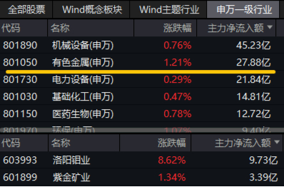 资金面上,有色金属板块继续获主力资金青睐!数据显示,有色金属板块全天获主力资金净流入27.88亿元,高居31个申万一级行业第二位!有色龙头ETF(159876)标的指数权重股洛阳钼业获主力资金净流入9.73亿元,霸居A股吸金榜第二位,权重股紫金矿业亦大幅吸金3.39亿元。