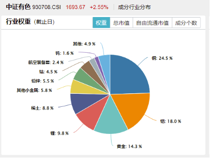风险提示:有色龙头ETF(159876)被动跟踪中证有色金属指数(930708.CSI),该指数基日为2013.12.31,发布日期为2015.7.13,指数成份股构成根据该指数编制规则适时调整,其回测历史业绩不预示指数未来表现。本文中指数成份股仅作展示,个股描述不作为任何形式的投资建议,也不代表管理人旗下任何基金的持仓信息和交易动向。基金管理人评估的该基金风险等级为R3-中风险,适宜平衡型(C3)及以上的投资者,适当性匹配意见请以销售机构为准。任何在本文出现的信息(包括但不限于个股、评论、预测、图表、指标、理论、任何形式的表述等)均只作为参考,投资人须对任何自主决定的投资行为负责。另,本文中的任何观点、分析及预测不构成对阅读者任何形式的投资建议,亦不对因使用本文内容所引发的直接或间接损失负任何责任。基金投资有风险,基金的过往业绩并不代表其未来表现,基金管理人管理的其他基金的业绩并不构成基金业绩表现的保证,基金投资须谨慎。