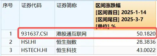 以1月14日作为本轮行情起点,截至上周五,港股通互联网指数区间累计涨幅高达50.18%,弹性突出,显著优于恒指、恒科指同期表现,是追踪本轮港股“科网牛”的高效率投资工具。