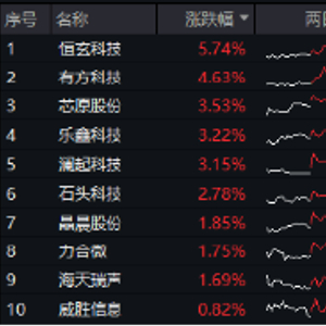 科技卷土重来,AI攻势不减!科创板人工智能指数涨幅前十大成份股中,半导体行业个股占据6席,其中,恒玄科技涨超5%,芯原股份、乐鑫科技、澜起科技涨逾3%。此外,有方科技涨超4%,石头科技涨逾2%。