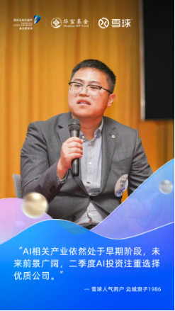 在圆桌讨论环节,雪球人气用户刘志超、边城浪子1986与华宝基金指数研究部曹旭辰围绕“东升西降”现象及AI投资策略展开精彩对话。