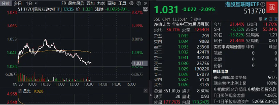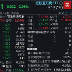 重仓港股互联网龙头的港股互联网ETF(513770)早盘低开,后企稳向上收复所有跌幅,但随后再度向下,场内价格现跌2.09%,实时成交额3.68亿元。