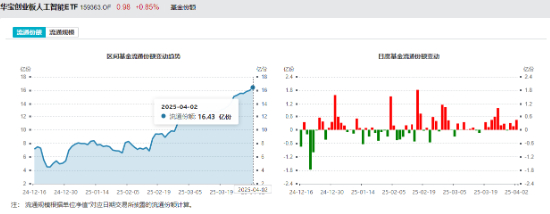 从单周表现看,受全球不确定性因素扰动,市场成长风格受压制,创业板人工智能指数单周下跌2.37%,周线三连阴。资金借道ETF频繁布局创业板人工智能,据统计,创业板人工智能ETF华宝(159363)近10日有9日获资金净流入,累计吸金达3.46亿元,最新基金份额达16.43亿份,再创上市新高。