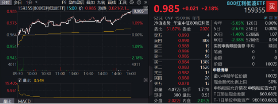 在一系列“稳市场”政策激励下,今日A股迎来反弹,红利低波资产表现不俗。截至收盘,场内唯一的800红利低波ETF(159355)场内价格大涨2.18%。在海外不确定性影响下,机构提示阶段配置上需要“以稳为主”,红利低波风格有望乘风再起。