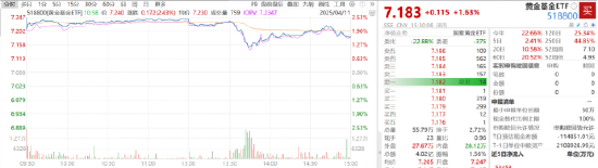 国际金价再创新高,COMEX黄金突破3200美元/盎司的高点。受此提振,黄金股票ETF(517400)涨3.21%,黄金基金ETF(518800)涨1.63%。