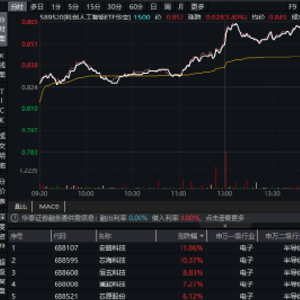 周五(4月11日),芯片股再度领涨科创板人工智能方向,安路科技涨超11%,芯海科技涨逾10%,恒玄科技涨超8%。热门ETF方面,重点布局国产AI产业链的科创人工智能ETF华宝(589520)场内价格最高飙涨超4.8%,收涨3.4%,斩获日线4连涨!