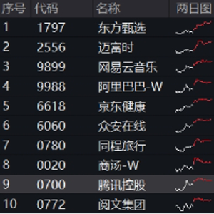 今日港股延续攻势,恒指、恒科指双双涨超2%,科网龙头集体上攻,电商概念股领涨居前。截至收盘,东方甄选涨逾12%,阿里巴巴-W涨超5%,商务部等6部门日前联合印发《关于组织开展“购在中国”系列活动的通知》。此外,腾讯控股、哔哩哔哩-W涨超2%,快手-W、美团-W涨逾1%。