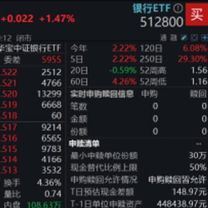 顺势而起,攻守兼备!看好银行板块配置性价比的投资者可以关注银行ETF(512800)。银行ETF(512800)被动跟踪中证银行指数,成份股囊括A股42家上市银行,近三成仓位布局工商银行、农业银行、交通银行等国有大行,捕捉“高股息”主题机会;约七成仓位聚焦招商银行、兴业银行、江苏银行等高成长性股份行、城商行、农商行,是跟踪银行板块整体行情的高效投资工具。