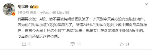 海外扰动不断,老胡盘中连发两文呼吁投资者保持信心与定力。“稳住股市楼市”也是2025年政府工作报告的重点工作之一。上周,政策组合拳强力引导市场预期,彰显了实现稳住股市目标的决心。对于后续,机构提示关注4月份政治局会议重要政策窗口期。