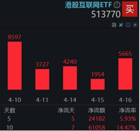 ② 南向资金持续力挺。今日南向资金再度涌入23.09亿港元,本月截至昨日已累计净流入超1500亿港元,创下2021年以来同时间段新高。特别是在跌幅较大的上周,南向资金抄底更为踊跃。单周净流入总计952.36亿港元,仅4月9日当天,南向资金净买入港股356亿港元,创造了有史以来日度净买入额新高,而港股科网板块成为资金涌入的重点目标。