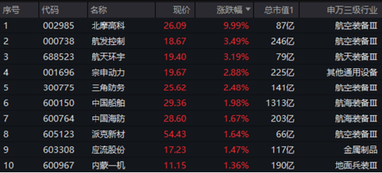 从成份股表现来看,大飞机概念涨幅领先,北摩高科午后涨停封板,航发控制、航天环宇涨超3%。军工电子受挫拖累板块走势,振华科技跌7.25%,宏达电子跌4.64%。