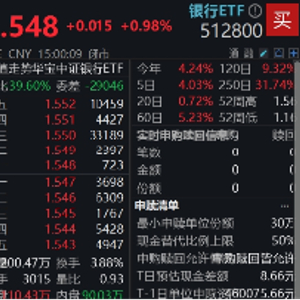 A股顶流银行ETF(512800)早盘低开后迅速拉升,盘中场内价格一度涨逾1%,收涨0.98%,日线强势9连阳,新一轮向上节奏或已开启。值得注意的是,银行ETF(512800)今日场内收盘价格刷新历史新高!