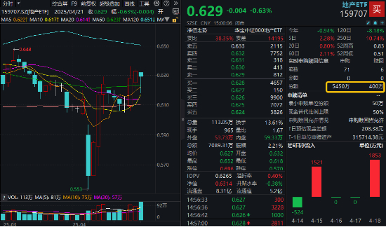 资金亦频频借道ETF布局地产板块机会。4月21日,全市场唯一跟踪中证800地产指数的地产ETF(159707)场内小幅调整,资金盘中溢价抢筹5050万份!此前,资金近五日已有两日大幅加仓,近五日累计加仓金额超2800万元,表明对后市机会的积极看多。