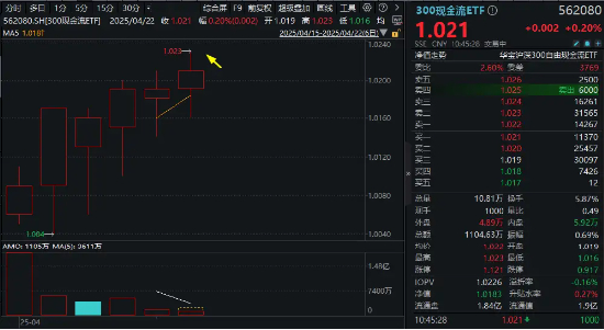 ETF方面,国内首批跟踪300现金流指数300现金流ETF562080)同步上涨,盘中高价1.023元,再创上市新高。尤为值得一提的是,自415日上市以来,300现金流ETF562080)每个交易日均收出阳线,防御属性凸显,今日望日线六连阳。