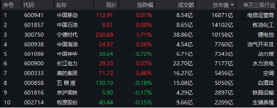 从成份股表现来看,海大集团、洛阳钼业涨超4%居前,权重股多数飘红,宁德时代涨1.71%,中国移动、中国石油、中国海油均顽强收涨。下跌方面,云铝股份、长春高新跌逾2%居前,权重股中国神华、五粮液收跌。