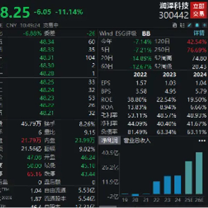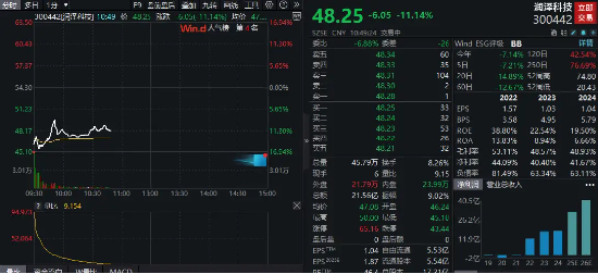 消息面上,润泽科技423日晚间发布年度业绩报告称,2024年营业收入约43.65亿元,同比增加0.32%归属于上市公司股东的净利润约17.9亿元,同比增加1.62%;基本每股收益1.04元,同比增加0.97%。此外,该公司宣布拟5亿元-10亿元回购股份。从今日行情看,对市场而言该份业绩报告或不及预期。