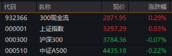 A股缩量盘整,现金流策略见真章!聚焦大盘蓝筹“现金牛”的300现金流指数全天飘红,跑赢上证指数、沪深300、中证A500等主要指数。