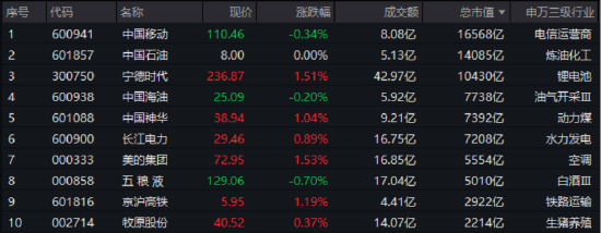 图:300现金流指数市值前十成份股涨跌幅(4月24日)