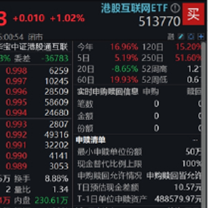 板块整体表现看,重仓港股互联网龙头的港股互联网ETF(513770)高开高走,场内价格一度涨逾2%,午后涨幅转向温和,收涨1.02%,全天成交额4.19亿元,环比放量。