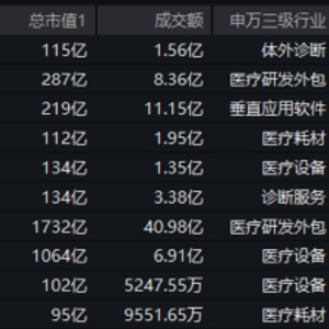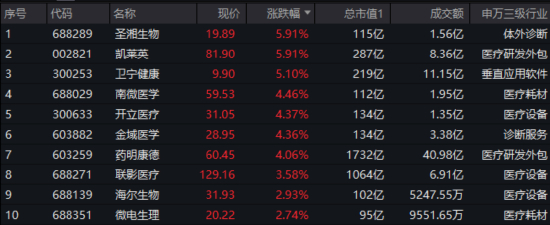 图:中证医疗指数4月29日涨幅前十成份股