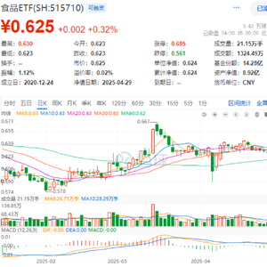 今日(4月30日),吃喝板块冲高回落。反映吃喝板块整体走势的食品ETF(515710)盘中场内价格涨幅一度达到1.12%,后震荡回落,截至收盘,涨0.32%,终结日线五连阴。