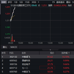战绩可查!中航成飞飙涨15%!国防军工ETF直线冲高3.3%!全球军贸逻辑强化,国防军工市场有望突破上限!