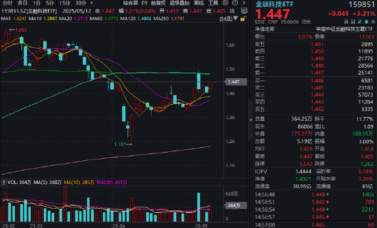 重磅谈判超预期,大金融即将起飞?东方财富放量登顶,金融科技ETF(159851)尾盘突击上涨超3%!