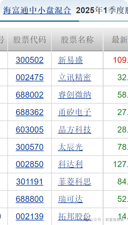 希望后期甬矽电子股票价格能上涨,以弥补该基金的亏损,笔者发现,海富通碳中和混合A基金是在2025年1季度才买入72.67万股,而当时股票价格正处于高位。而对于海富通中小盘混合基金是在2024年4季度买入5.82万股的甬矽电子,2025年1季度持有108.95万股(1季度大幅加仓,也是加在了高位)。