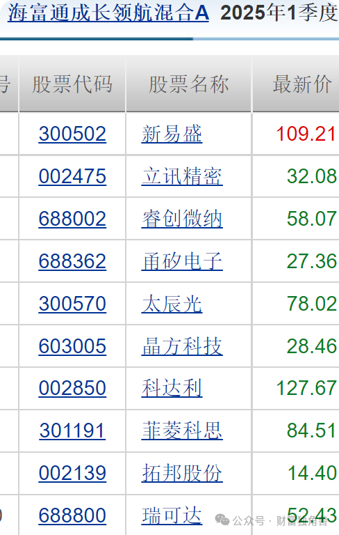 笔者还发现,该基金在2025年1季度突然买入72.67万股的甬矽电子,不过,该基金在2025年1月份买入至今,在2025年1月2日-2025年5月9日股票价格已经下跌19%。笔者翻看范经理旗下其他基金产品发现,有数只基金也买入甬矽电子,其中有3只基金买入了甬矽电子,其包括海富通成长领航混合A、海富通碳中和混合A、海富通中小盘混合。