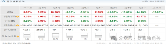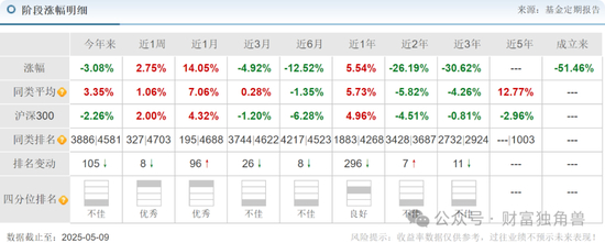 笔者还发现,该基金在2023年4季度买入68.38万股的亿纬锂能,2024年1季度持有68.38万股,2024年2季度持有77.23万股,2024年3季度持有55.47万股,2024年4季度持有55.47万股,2025年1季度持有55.47万股。然而,在该基金持有期间,在2023年10月9日-2025年5月9日股票价格下跌了2.7%。