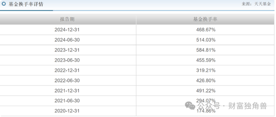 笔者还发现,该基金的换手率极高,2023年4季度换手率584.81%,2024年2季度也高达514.03%。高换手率意味着频繁交易,这会导致投资组合的波动性增加。频繁买卖股票使得基金的持仓结构不断变化,难以形成稳定的投资组合。