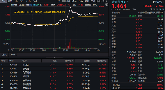 二、公募新规利好大金融?东财交投再度登顶,银之杰盘中冲击20CM涨停,金融科技ETF脉冲摸高4.7%!