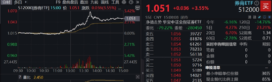 “牛市旗手”突然发力,带动A股午后飙升,沪指一度重返3400点创近2个月新高。A股顶流券商ETF(512000)场内价格最高涨逾5%,收涨3.55%,创下2025年1月15日以来单日最大涨幅,一举收复60日线。全天成交额16.62亿元,环比激增201%,创2025年3月17日以来天量!