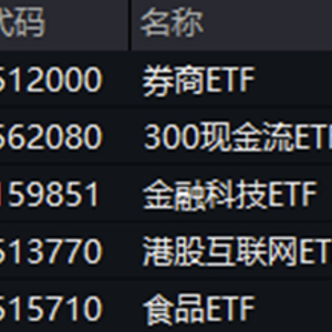 盘面上,券商、银行、保险等大金融全面走高,A股顶流券商ETF(512000)场内价格最高涨逾5%,金融科技ETF(159851)午后水下直线翻红,场内脉冲摸高4.7%。白酒龙头亦午后暴拉,食品ETF(515710)盘中场内价格摸高2.22%。此外,“现金奶牛”公司大面积飘红,300现金流ETF(562080)场内价格收涨3.55%,创上市以来新高。